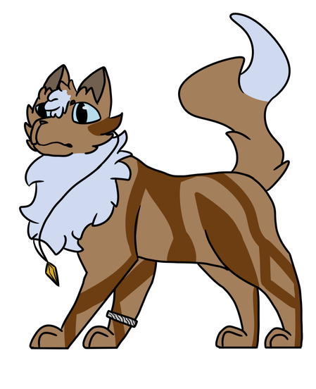 his fur is ginger, with dark ginger patterning his body. he has touches of white on the tip of his tail, his chest fur/"mane", and on his fringe.